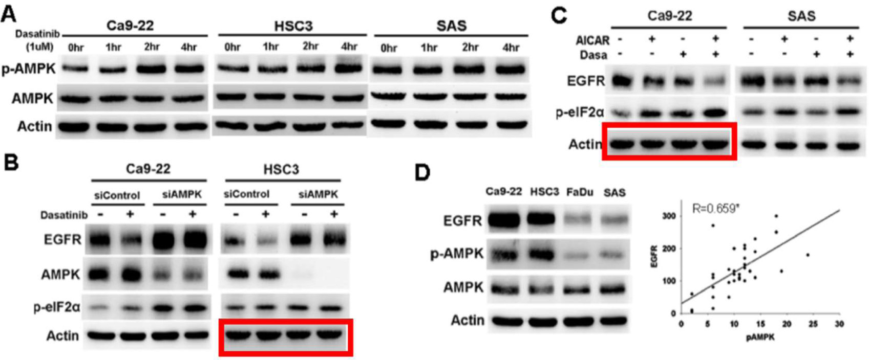 Figure 3: AMPK activation mediated dasatinib-induced ER stress and EGFR degradation.